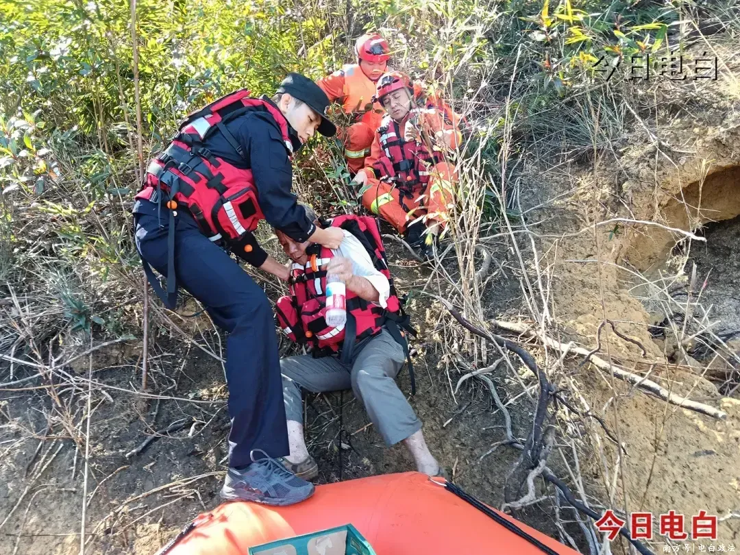 12日13时左右,老伯听到无人机发出的家属语音,按指引向水库边靠拢并见到前来救援的冲锋舟,于是大声呼喊。山下的电白公安分局罗坑派出所民警和阳春消防救援人员闻讯上山,成功将老伯救下。